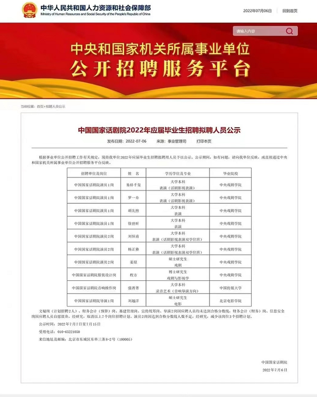 7月16日,中国国家话剧院针对易烊千玺考编事件做出了情况说明,表示所有报名应聘者都是有通过资格审查参加考试,并且经过合法合规的招聘程序拟录用,不存在网传“因人设岗”和“萝卜招聘”等问题。