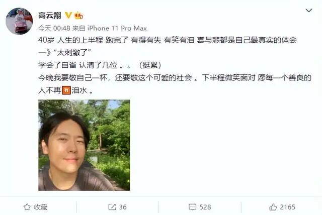 8月15日,知名男演员高云翔迎来了40岁生日,通过微博发文为自己庆生,并晒出了一张帅气的自拍照,面向阳光流露出了对未来的美好向往。可是他的庆生文案却给人一种爱恨交织的感觉,感慨人生上半程太刺激,还说自己学会了自省,认清了几个人,觉得挺累的,疑似内涵前妻董璇太现实。