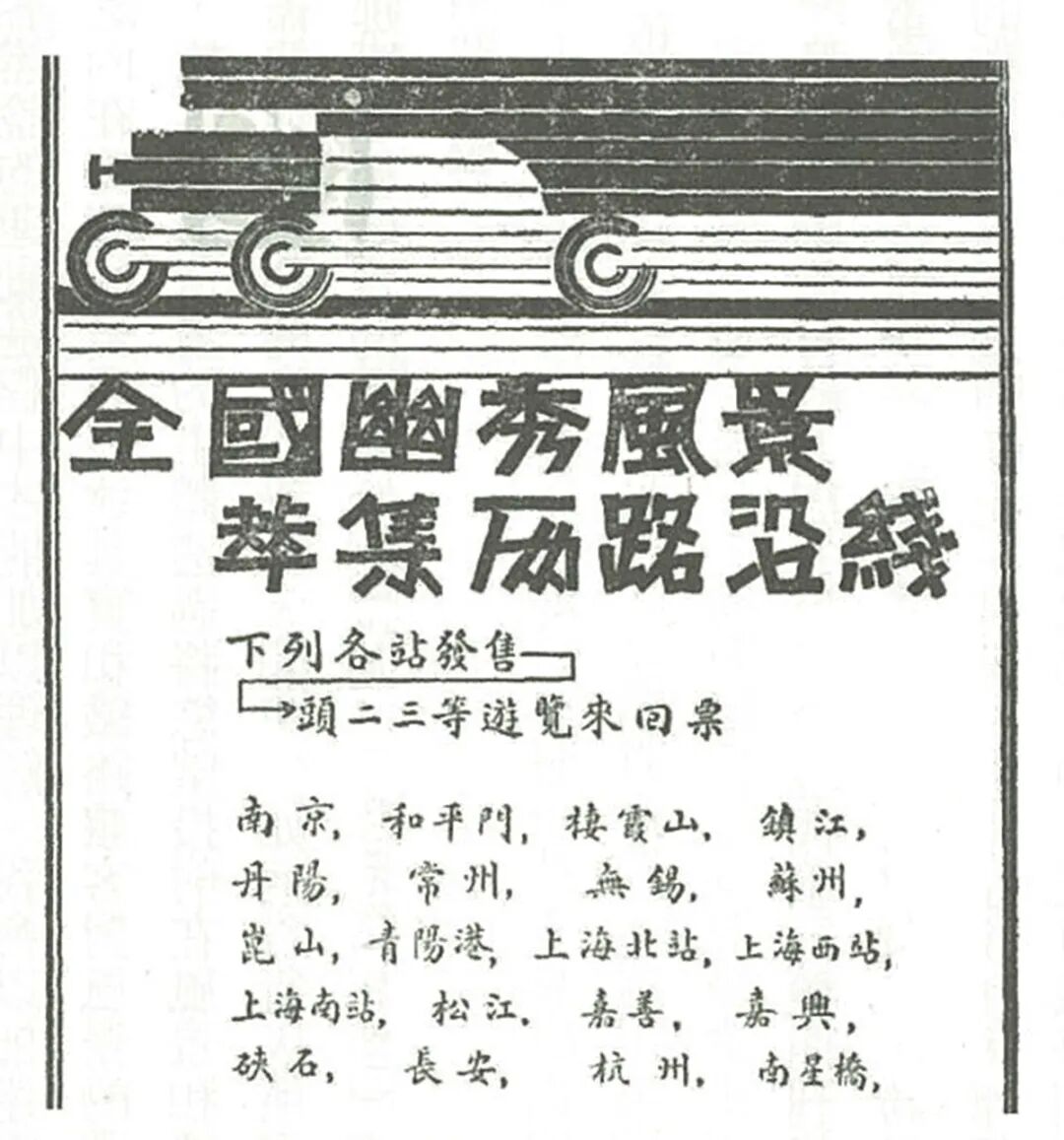 京沪沪杭甬铁路管理局发布在1935年第一卷第六期《铁道杂志》上的广告,针对游客售卖往返于长三角地区沪宁铁路、沪杭甬铁路各站的车票。