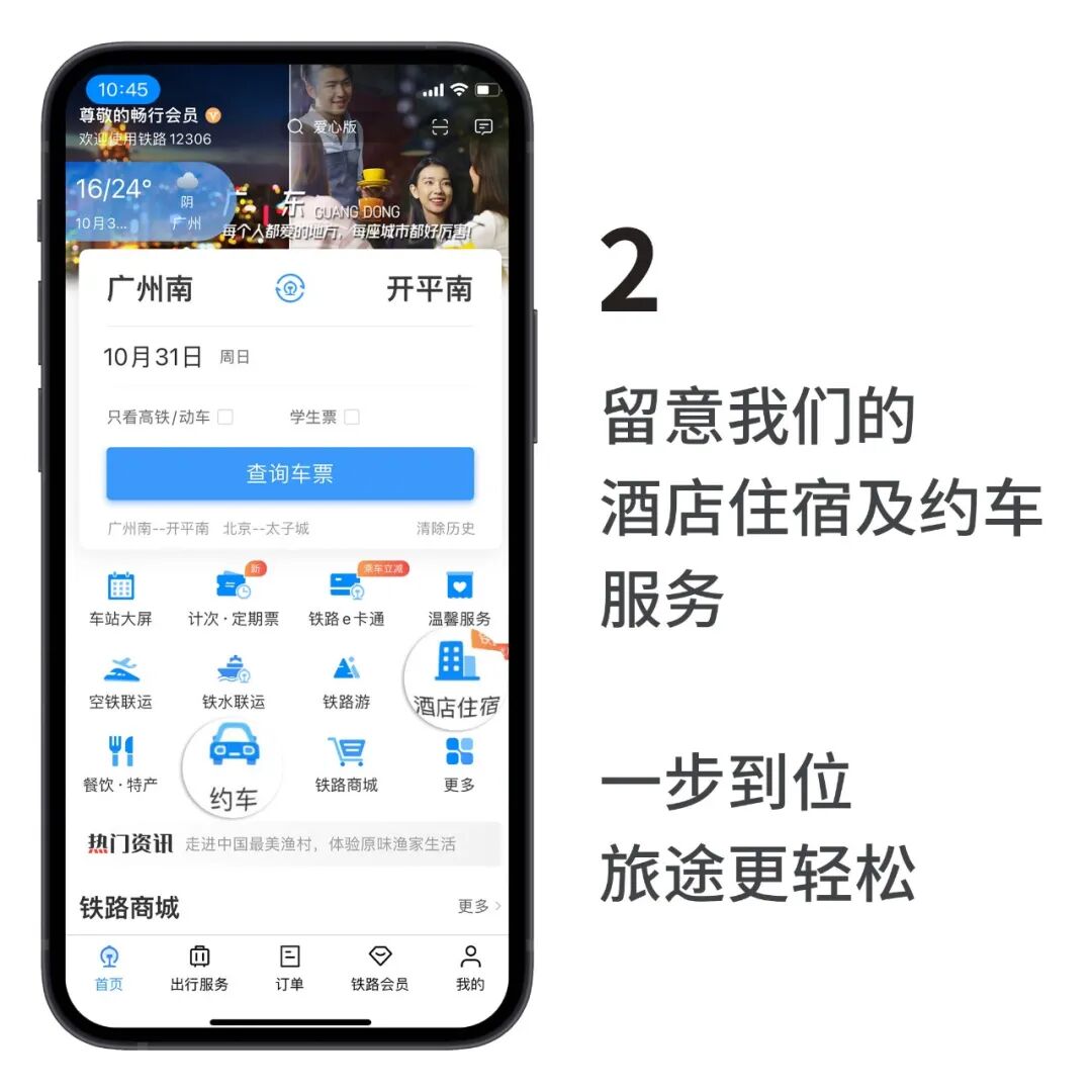 订好车票后在“铁路12306”APP即可同时预定酒店住宿,以及接送站的专车服务,一步到位,还有各种优惠可以拿。