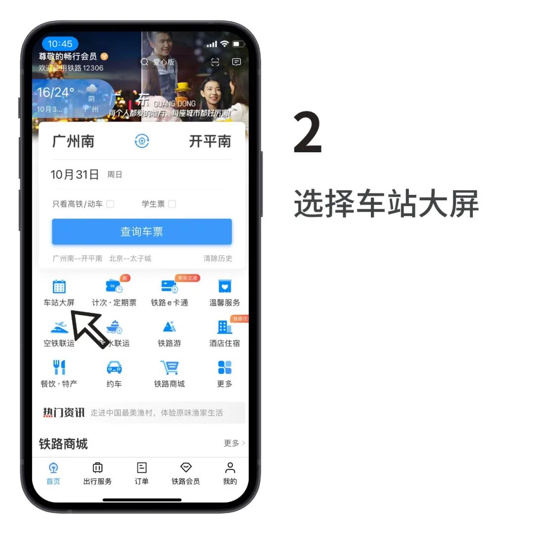 2007年,“开平碉楼与村落”被列入世界文化遗产名录。2010年姜文导演电影《让子弹飞》在开平取景,更是将这种中西结合的乡土建筑推介到更多人面前。2018年江湛铁路建成通车,乘坐火车从广州到开平仅需1小时左右。开平市主要的火车站是开平南站,通过“铁路12306”APP的车站大屏功能即可快速了解列车通达城市及车次等信息。