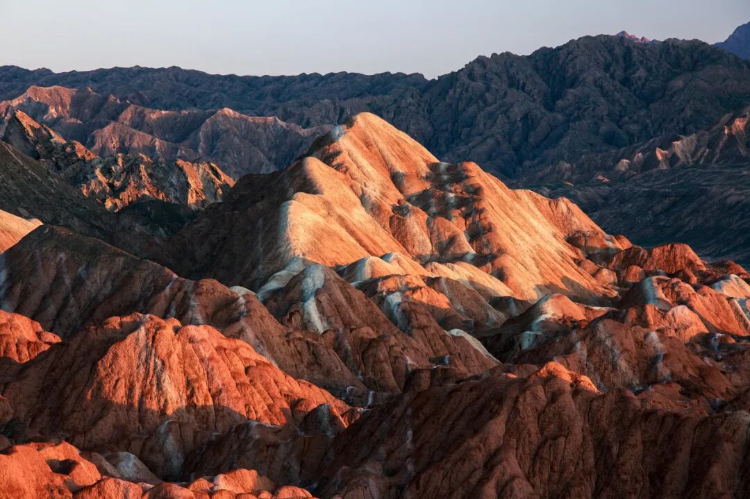 日出之前,月光给丹霞地貌蒙上一层清冷的气息。