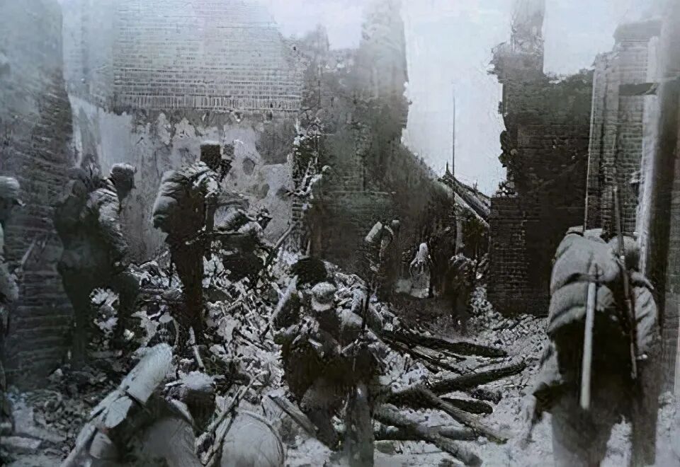 整个滕县硝烟弥漫,房屋倒塌,一片废墟。
