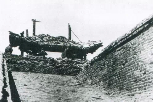 另一路向东南城角的日军,虽然被战士们用手榴弹炸毁掉两辆敌车,又在日军密集的火力下歼灭了四十余人,但是,一场激烈战斗之后,连队的官兵最后仅剩下十四人。
