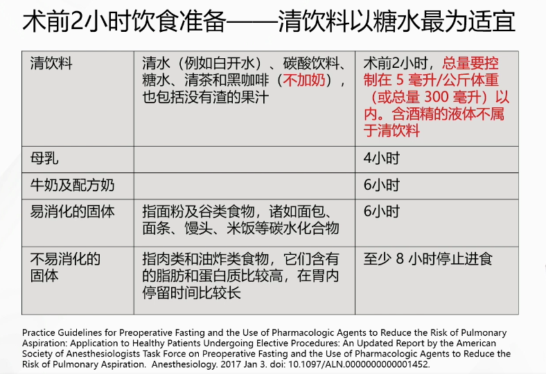 再回到刚才的案例,患者喝了一瓶可乐,250ml左右,按照我们过去的观点,这个病人可能需要推迟手术时间。按照现在的最新观点,患者可以正常手术。
