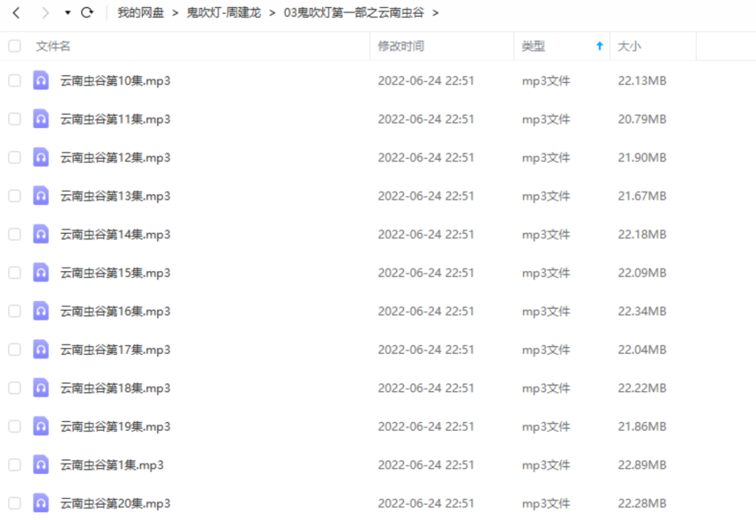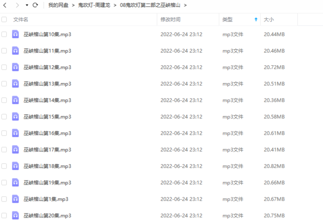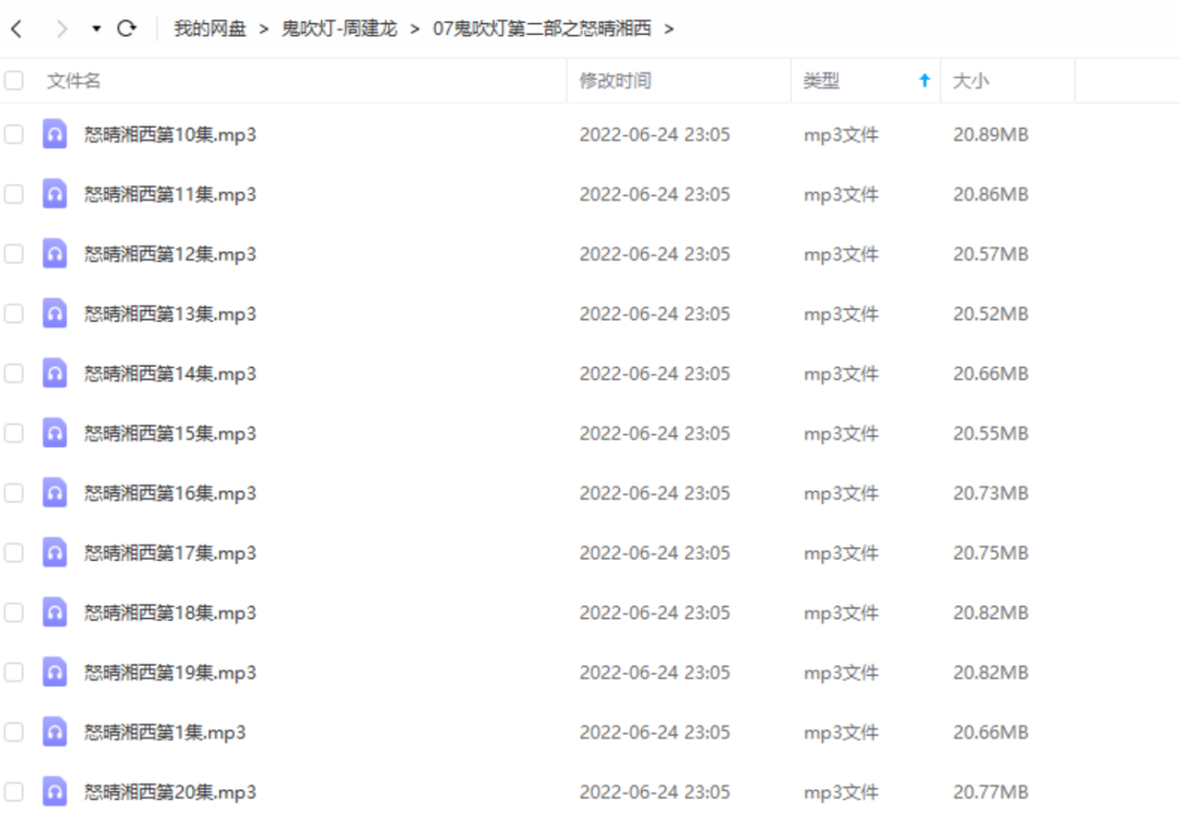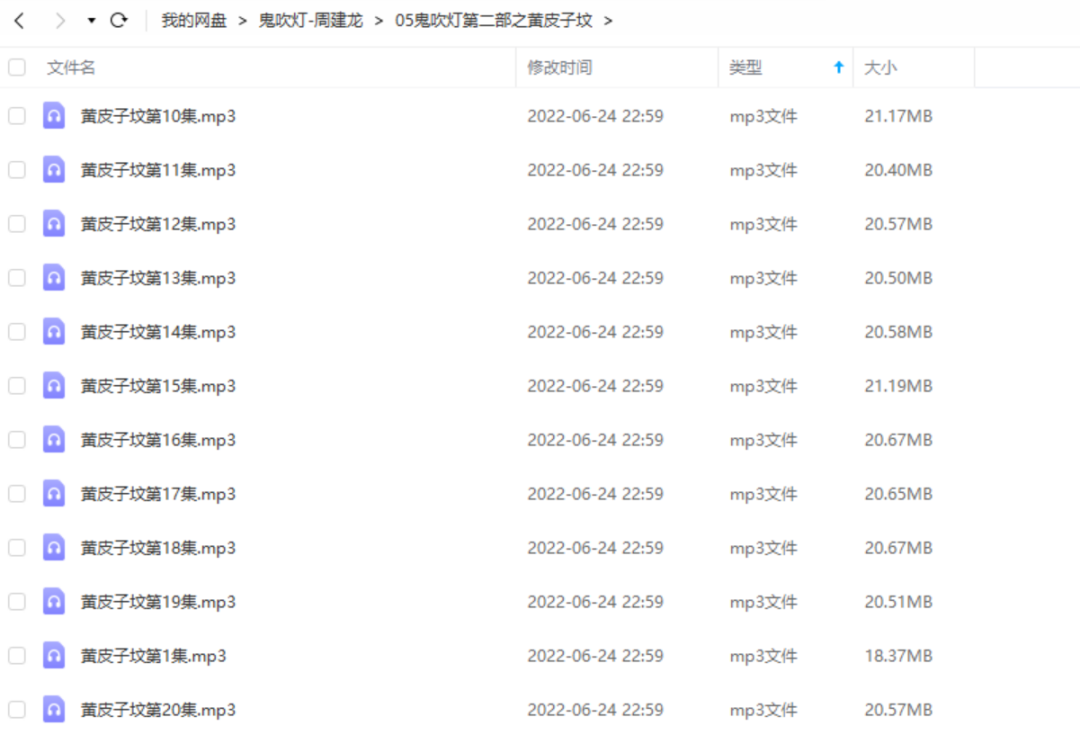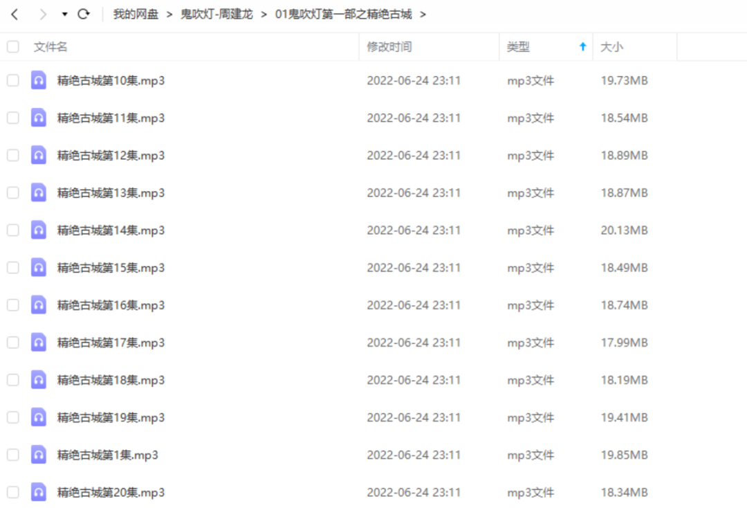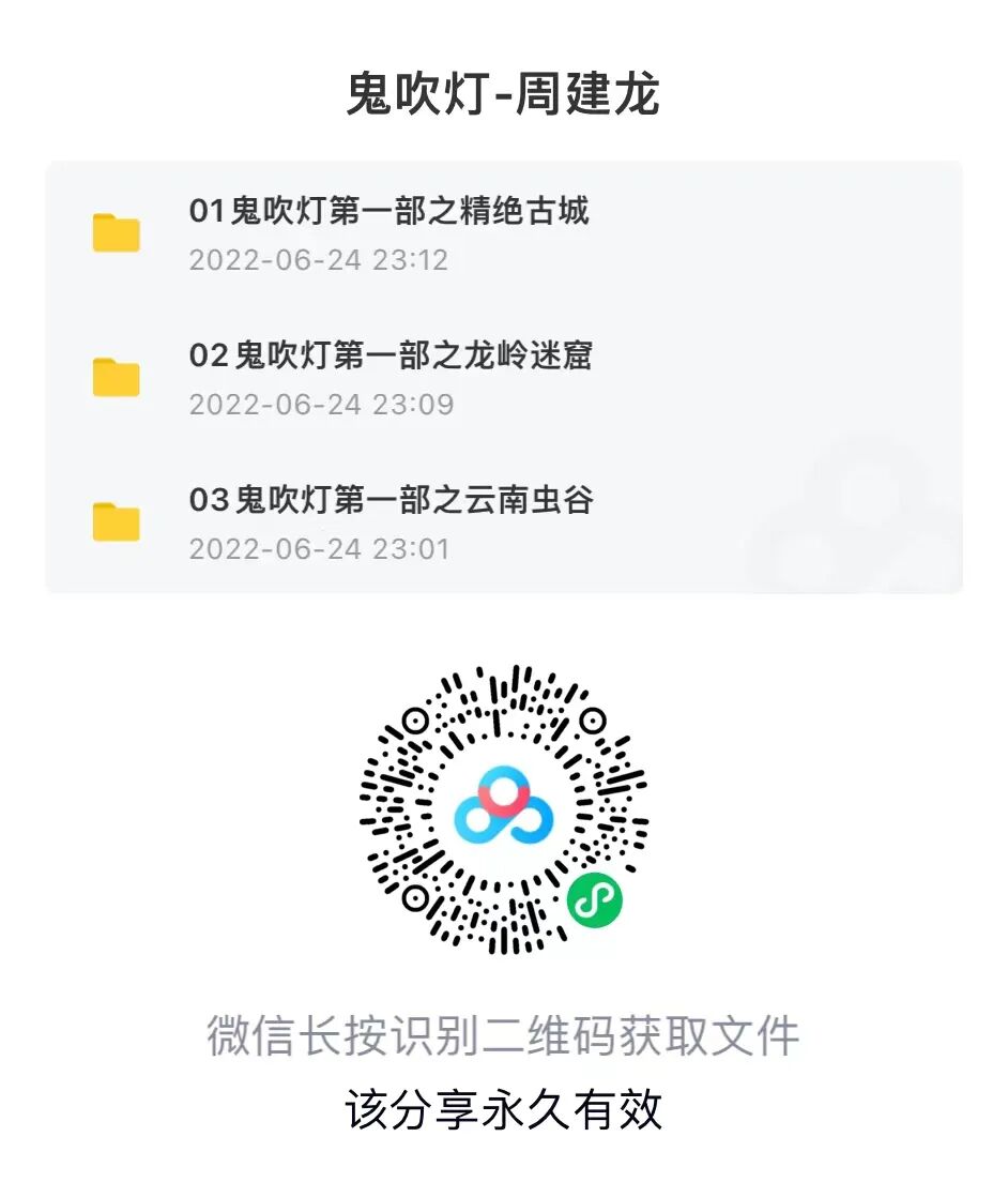 最早听的是周建龙老师版本的,后来喜马拉雅因为版权原因下架了,周建龙老师重新录制了第一部,减少了背景音乐,我觉得新版本的还是不错的。最近一直想二刷鬼吹灯,周建龙老师之前的背景音乐虽然有点吵,但是带入感很强,还记得自己第一次听《精绝古城》半夜吓的不敢上厕所。现在再听,一听就犯困,哈哈,可能已经免疫了。相比于南派三叔的盗墓笔记,我更喜欢鬼吹灯系列,情节故事更具有跌宕感。天下霸唱也算是开创了盗墓系列书籍的先河,get到了我的兴趣点。也是费尽心思,从网上搜索了一下周建龙老师的原声,再次回味一下经典。分享的链接已设置永久有效,无须解压码,喜欢的小伙伴可以收藏,防止迷路。
