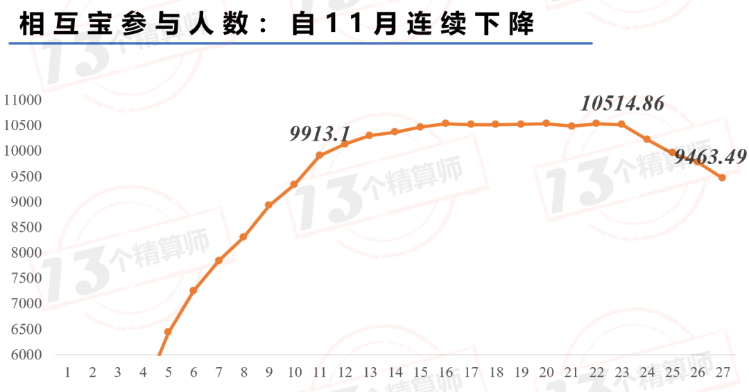 水滴互助最为惊悚,2019年4月参与人数还高达4000万,随后一路下滑到1200万。