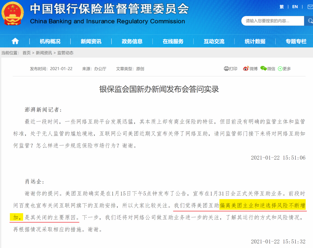 今年初,监管再次发声,给网络互助做了无主管、无监管、无标准、无规范的“四无”状态的定性,更是直接点名美团互助,给其他玩家重重敲响了警钟。