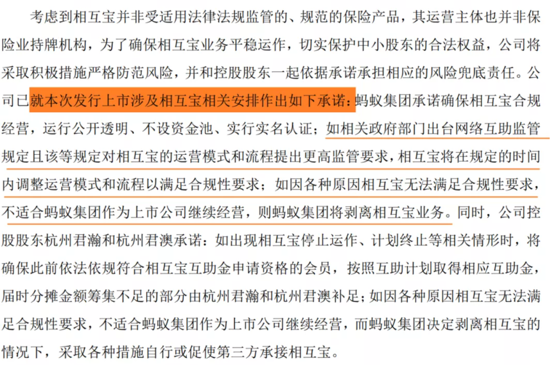 而蚂蚁对于相互宝的去留,早在其招股说明书中,就给了初步的答案:相互宝可能需要被剥离出去,如果发生最坏的情况,蚂蚁更希望的结果是有第三方能出面承接。