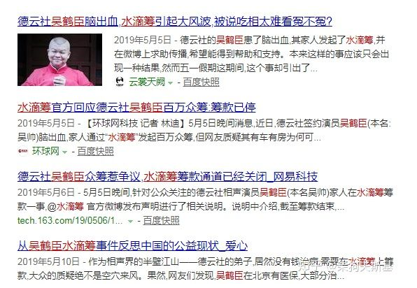 一个比较有代表性的例子,就是发生在水滴筹上的德云社演员虚假筹款事件。