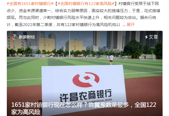 同时,央行发布的报告也指出,其中高达122家村镇银行被评为高风险机构,以山东、河南、河北三地数量最多。