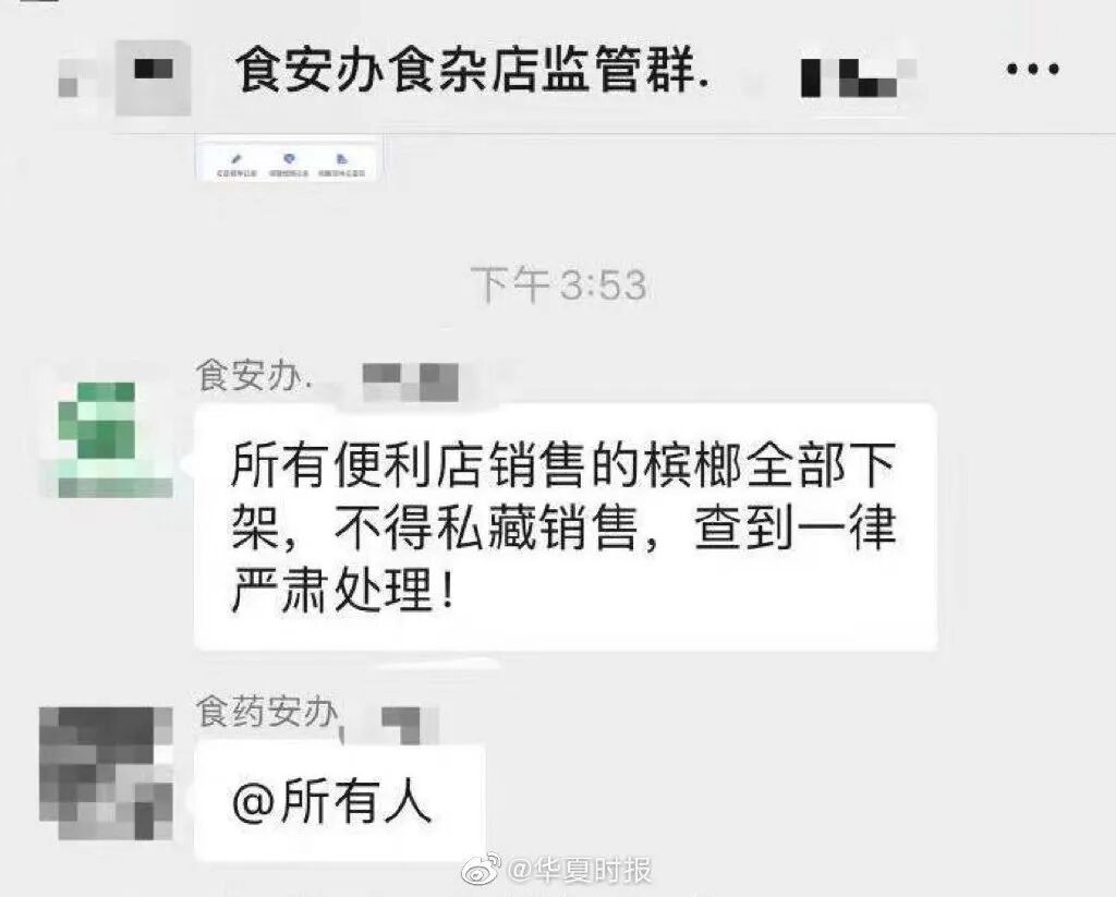 同一天,四川南充发布通知,要求不得销售食品包装和标签标识的槟榔制品,所有经营单位立即下架。