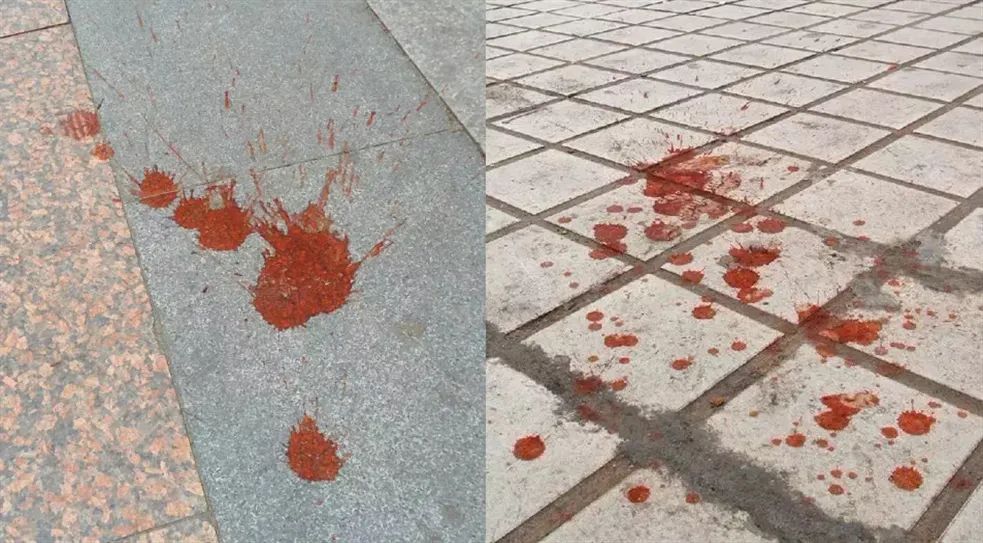 在槟榔最为风靡的湖南,路边大街上随处可见这样“血迹斑斑”的瘆人景象,不过那不是血迹,而是嚼食过槟榔的人吐出的汁液,腥臭难闻却难以及时被清理。
