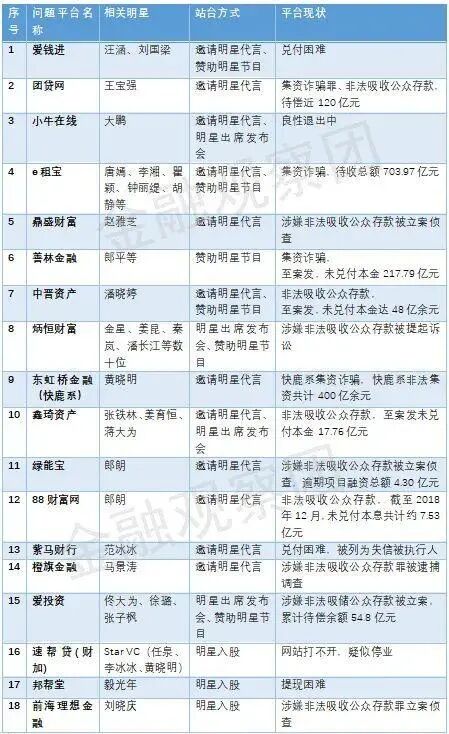 总之一句话,当初这些明星们造的孽,欺骗老百姓的信任投了爆雷的P2P,一个都跑不了。