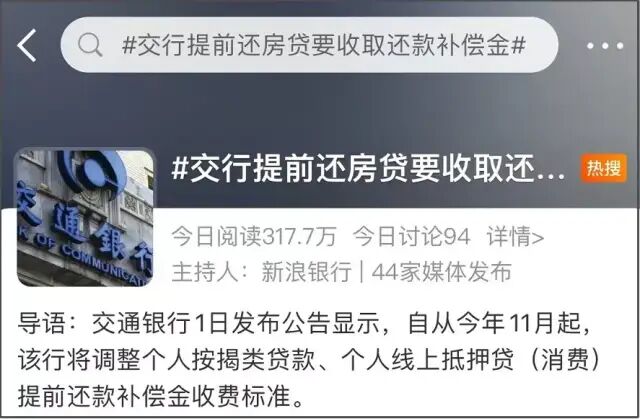 为了不让你提前还钱,银行可谓费心了心思,交行去年头一个打响调整还贷罚息第一枪的时候还偷偷摸摸,之后其他银行都是堂而皇之要交罚款的。