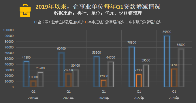 而且这近9万亿企业贷里面,6.68万亿都是中长期贷款,远超过去4年,等同于企事业单位一手撑起了银行贷款的大半边天。