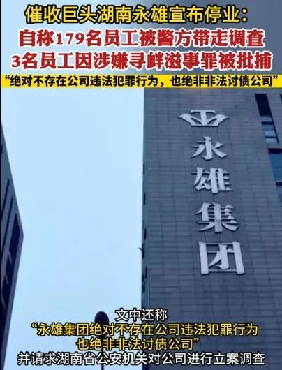 5月25日凌晨,中国最大催收公司“湖南永雄资产集团”突然自曝家丑,宣布即日起停业,商讨善后事宜,应对最坏局面。