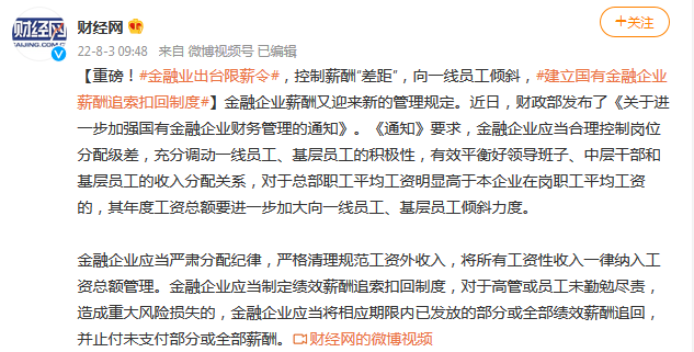 不过另一个隐性的原因更不容忽视,那就是高层的“金融限薪令”。