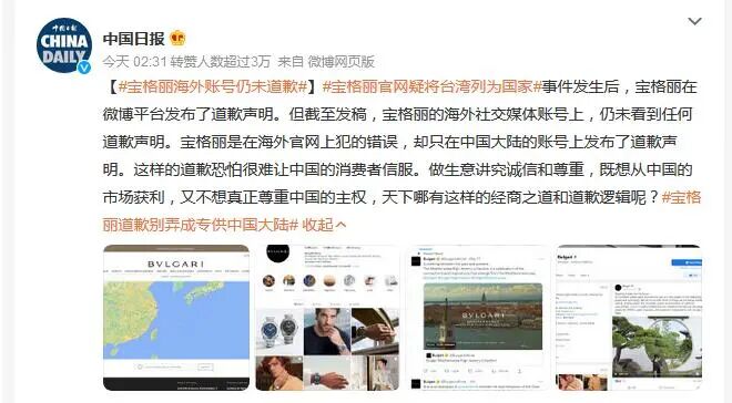 外国品牌辱华翻车四件套,舆论围攻、“真诚”道歉、代言人集体解约、销量暴跌,宝格丽也成了极少的一个例外。