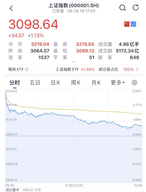 8月28日,大A开盘史诗级暴涨5.06%,这多年都未曾出现的罕见一幕,令2亿多股民瞬间沸腾。
