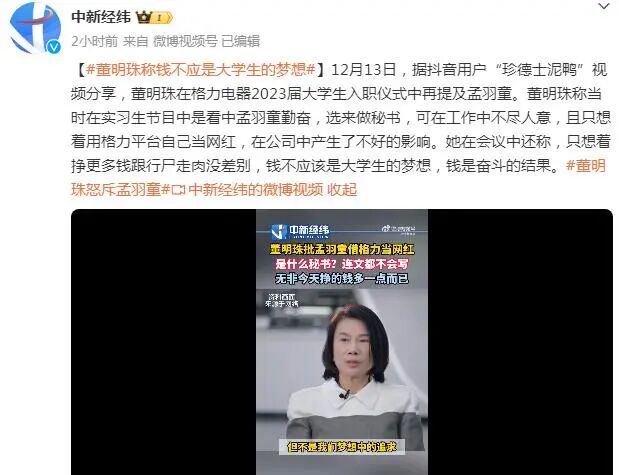 离职半年多的孟羽童,被董明珠揪着不放,隔三差五就拉出来鞭笞一顿不解气,还要当着所有格力新员工的面杀鸡儆猴,“只想着赚钱就是行尸走肉”!凶残一幕令多位大佬都忍不住喊话:给年轻人留点脸面。