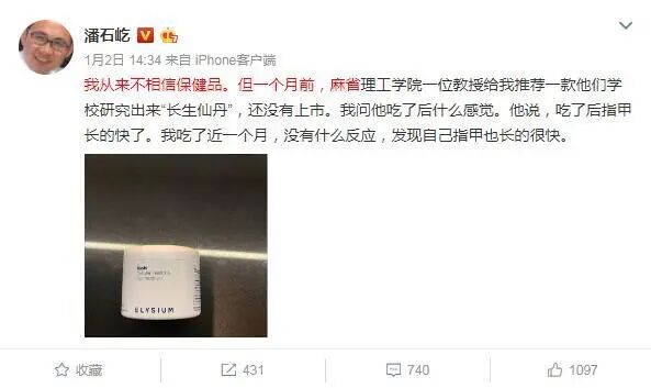 潘石屹2019年发的一条微博被广泛提及,可见他对“长生仙丹”的存在喜出望外。