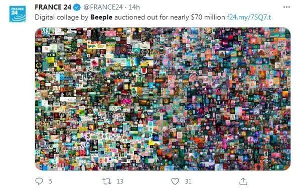 之所以能卖到如此惊天高价,全因它被赋予了一种超越比特币的高端属性,被称作“非同质化代币”NFT,作为一种新型数字资产,它宣称应用了互联网最前沿的区块链技术,而且只支持比特币等虚拟货币购买,无形中就压币王一头。