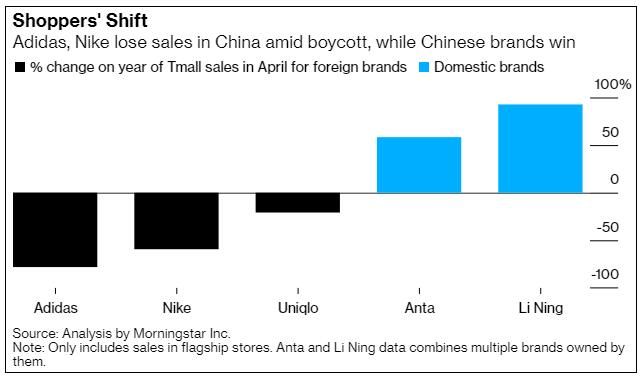 一个月后,中国消费者就用脚教这些公司做人,耐克电商销量暴跌6成,阿迪暴跌超过7成,HM多地门店被抵制到关门,上海旗舰店更是提前卷铺盖走人。