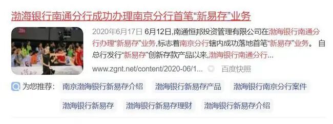 更关键的是,银行的便宜轻易占不得,可信集团出事的存款项目,是渤海银行新推出的一款存款产品“新易存”,简单来说就是一款存取灵活的“定期存款”,能自主设定存款期限,而且利息高。