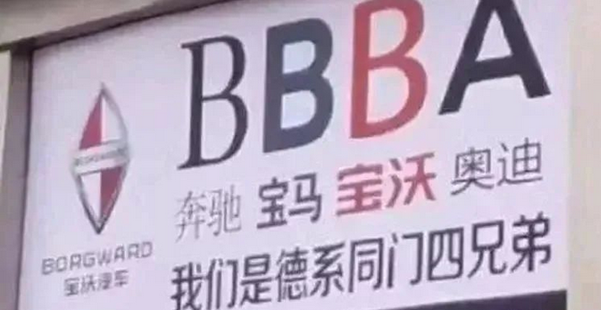 硬给自己加戏,声称自己同宝马、奔驰、奥迪是同门四兄弟,强行搞出一个“德系四强BBBA”概念。