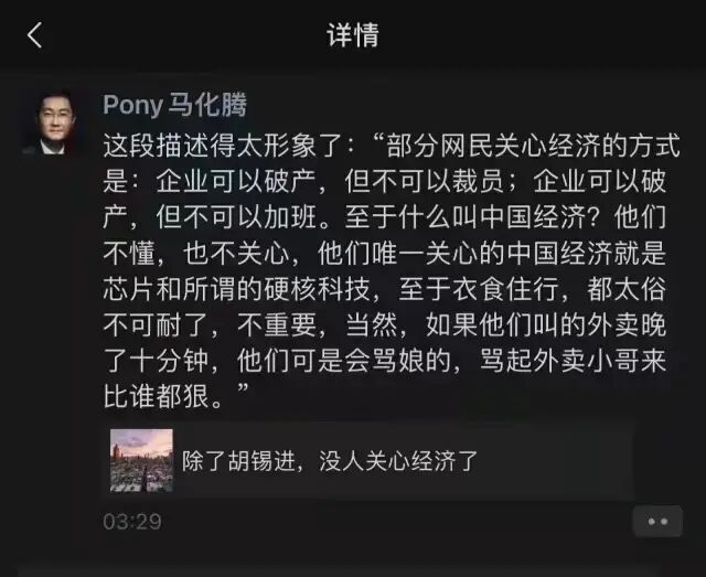 难怪这么差的形势,还有不少00后在网上说着企业的风凉话,马化腾都罕见发怒,在朋友圈对一篇文章大发感慨:部分网民眼里只有自己,只要事情不摊到自己头上,企业是死是活都无所谓。