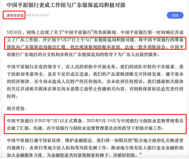 这家“中国平原银行”偏不信邪,它们没有低调退缩,反倒是高调杠上了监管机构,声称“已成立工作组与广东银保监局对接”,还要消除误会。
