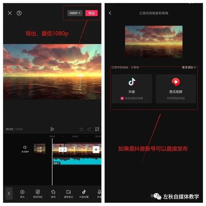 四、发布作品把刚刚剪辑好的作品导出,最低要1080p的分辨率