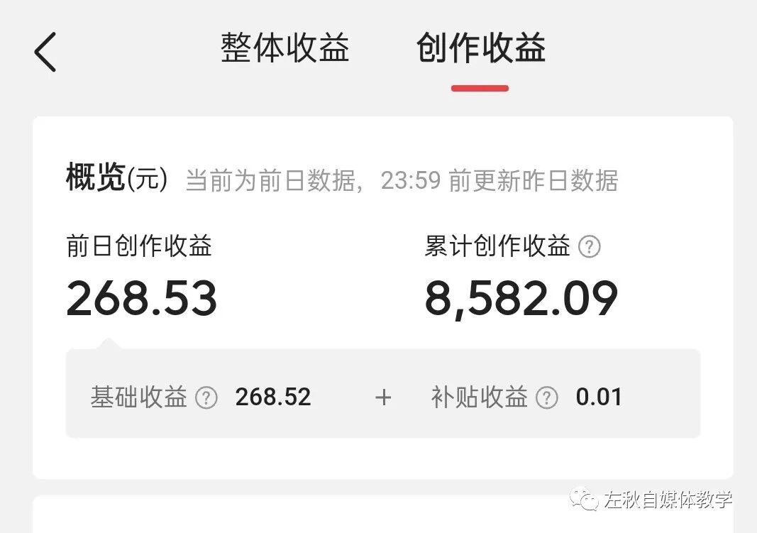 发布成功后,你的作品有播放量,你的后台就会产生收益了。10000的视频播放量能有个30~80块不等的收益。具体操作都和大家讲了,剩下的就是实操剪辑!