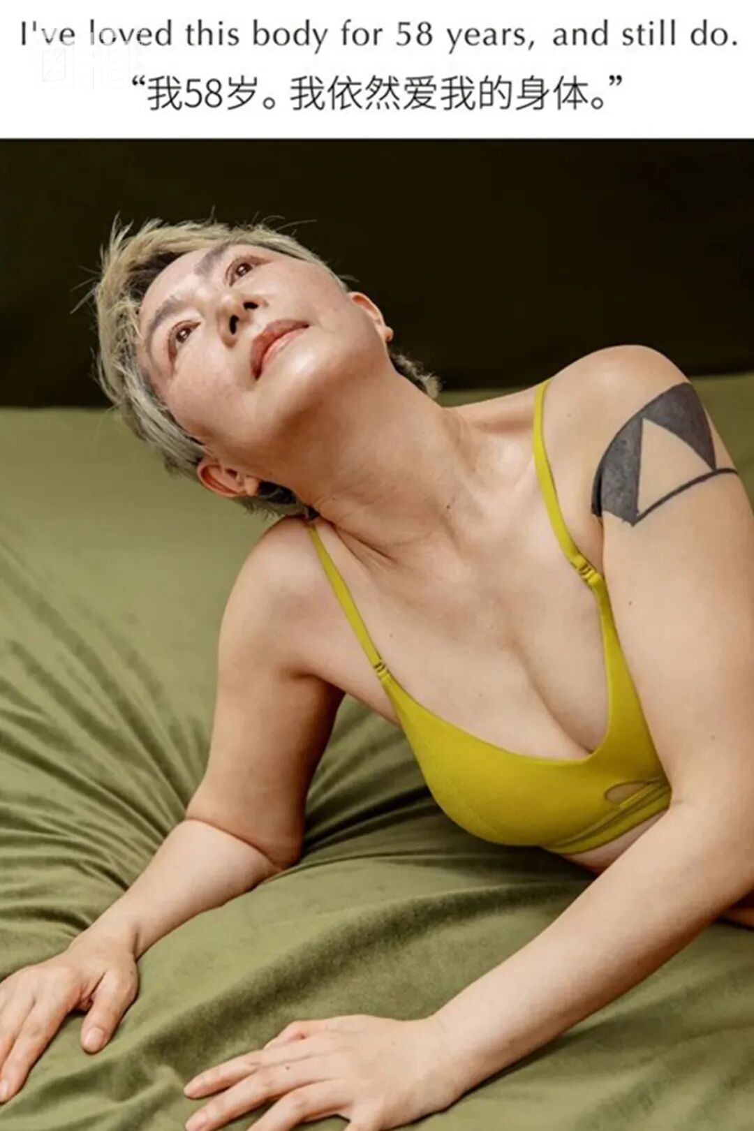 我当时就说,我肯定不会,美是没有年龄界限的,我也曾年轻过,我也曾美过,所以我不需要跟不同年龄去比较。就像她们为我写下的口号一样:“我58岁,我依然爱我的身体”。