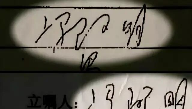 遗嘱上的签字与冯阿明生前的字迹根本不一样,一看就不是同一个人签的!