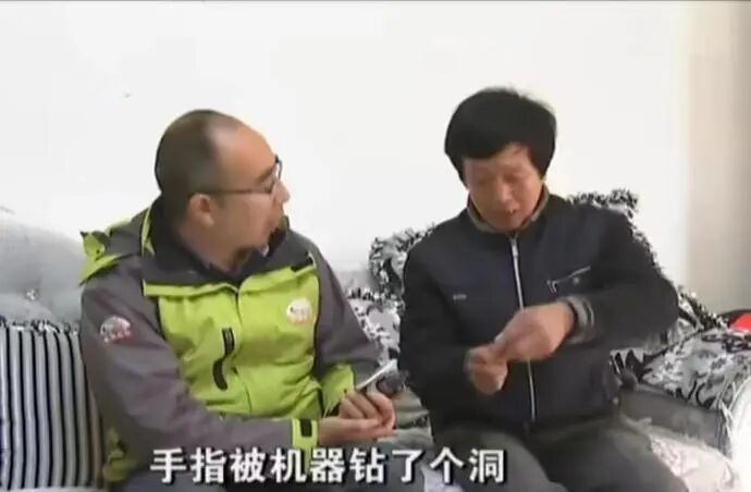 以前谢大姐就被机床弄伤过一次,手指被扎出一个洞。