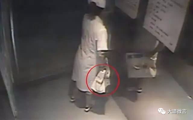 很快,那名护士就抱着一个白色的包,慌张地跑到五楼坐电梯,明显可以看到,这个包沉重了不少,而且她的手还会对包有托住的动作。