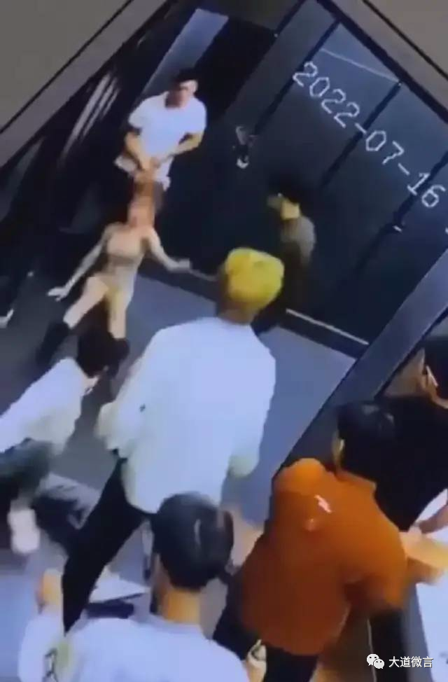 视频的一开始,出现在我们眼前的,是一个黄衣女子和一个白衣男子扭打在一起。黄衣女子一个劲地想往外逃跑,但是抵不过白衣男子的力量,直接被抓着头发拽,又拖回了厕所单间里,这期间,黄衣女子上身穿着的小背心都被拽掉了。