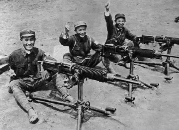 这张照片是日本人拍摄的,前面是严阵以待的日本士兵,所有的枪和炮都对准了一辆孤零零的国军战车,这辆孤零零的中国战车,正在冲向日军的阵地……