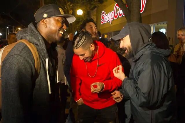 加拿大多伦多街头,青年人聚集在一起吸大麻。