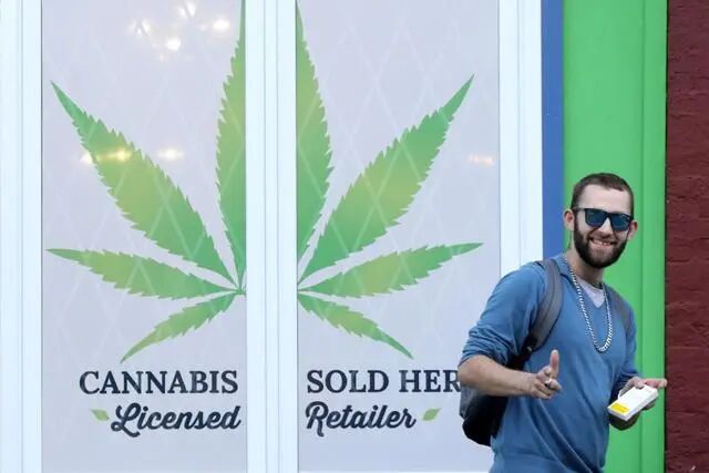 加拿大纽芬兰与拉布拉多省,一名顾客从大麻零售商店走出。这也是加拿大第一家正式开始营业的大麻零售商店。