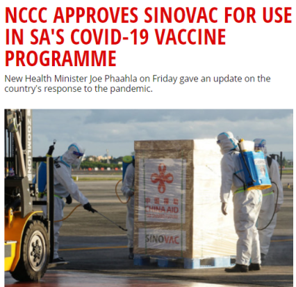 南非批准使用中国科兴新冠疫苗