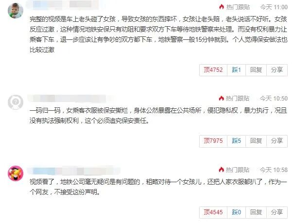 也有网友表示这则通报完全是在避重就轻,女生只是在车厢内吵几句,并没有影响地铁正常运营,反而是保安连拖带拽,把她衣服都撕烂了,难道不是更影响秩序吗?