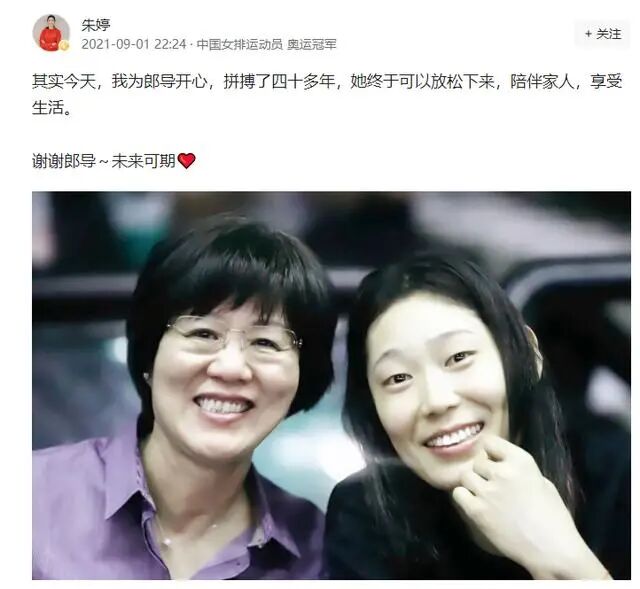 郎平不想回应回应,可是爱徒如何能看师傅受欺负,师傅卸任,名宿炮轰,朱婷在数阿叫媒体上强硬回应:其实今天,我为郎导开心,拼搏了四十多年,她终于可以放松,陪伴家人,享受生活,谢谢郎导,未来可期。