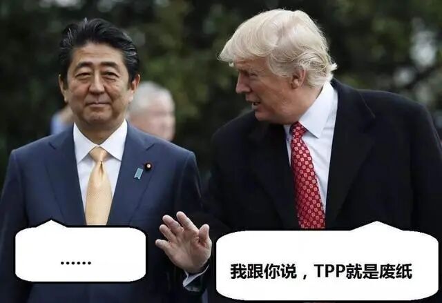 但计划赶不上变化,2017年特朗普入主白宫,不顾安倍的苦苦请求,这位老兄上台后的第一件事,就是签署行政令,一脚将TPP踢进了垃圾桶。面面相觑的日本和其他国家,搞出了一个没有美国的CPTPP。