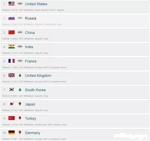 毫无疑问,榜首位置依然还是美国得。而榜眼和探花的头衔则分别被俄罗斯和中国摘得。而第4名至10名依次为:印度、法国、英国、韩国、日本、土耳其、德国。