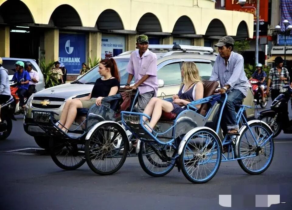 越南的基础交通设施也比较落后,最常见的人力三轮车特别有意思,和中国的人力三轮车不同,越南的人力三轮车乘客是坐在前面,司机是坐在后面用脚蹬。很多去越南旅游的游客都喜欢乘坐这种人力三轮车,坐在上面还是挺舒服的。不过,这种人力三轮车也被称为“客先死”,就是说如果发生交通事故,乘客是首先要被撞到,除非是从后面追尾。