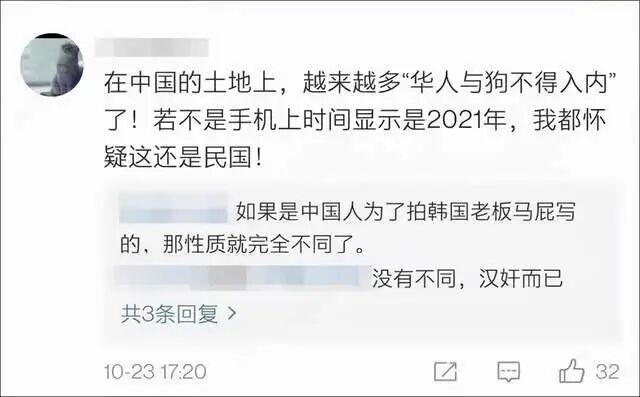 结合公开数据和网上爆料可知,深园汽车部件科技有限公司(南京)是韩国MSAutotech于2018年在中国投资设立的公司,主要经营汽车部件、汽车模具等业务。也就是说,这其实是一家韩国企业,怪不得敢这么歧视中国人。事件爆发后,不少网友纷纷发言,指责韩国人的种小人作风。一位网友说道:站起来,不许跪,另一位网友则说:若不是手机显示当前时间为2021年,我都怀疑这还是民国。