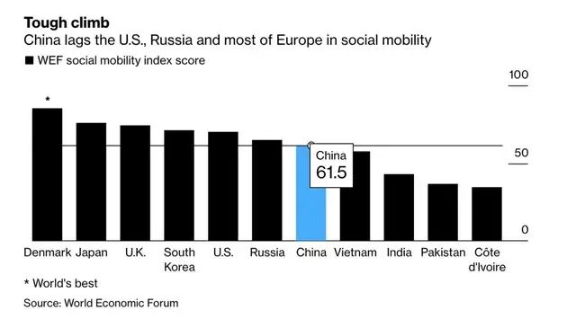 世界经济论坛发布的首个社会流动指数显示,中国的社会流动性低于欧美大部分国家。